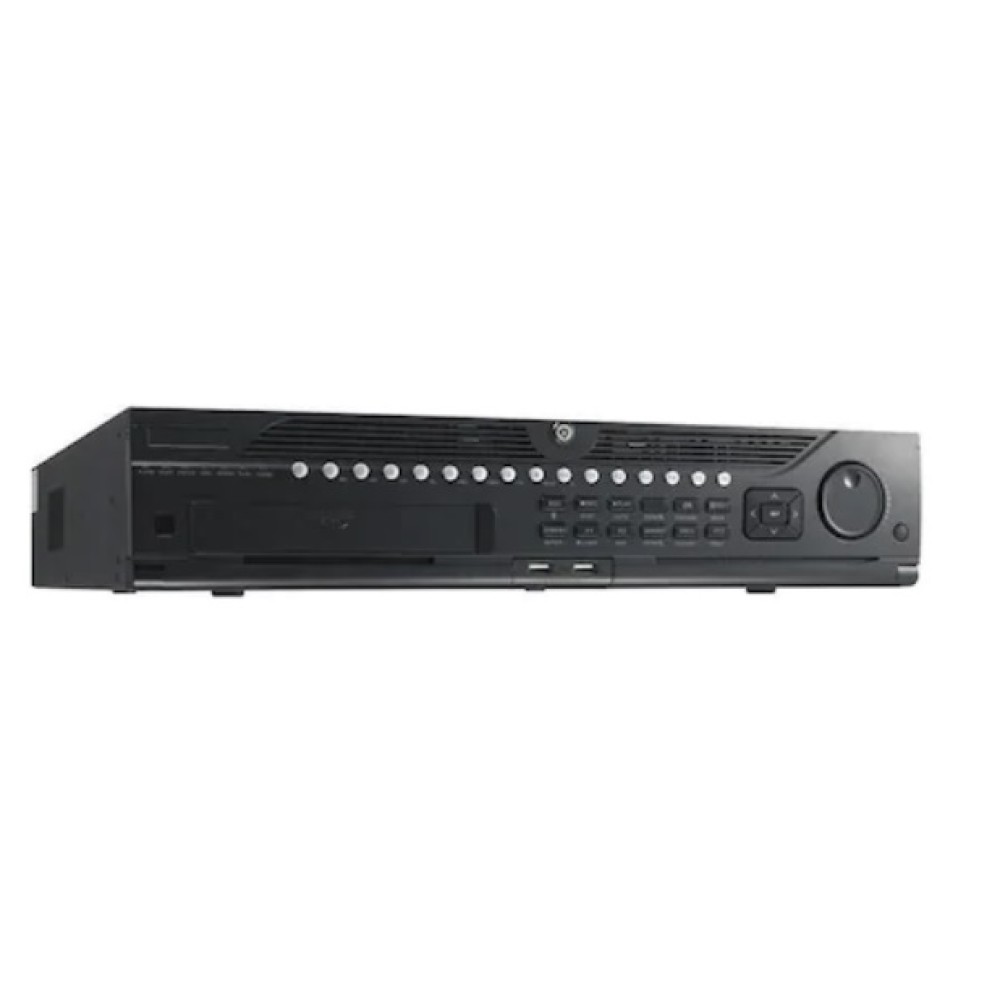 64 Kanal, H.265 desteği, 320 Mbps kayıt bant genişliği (RAID aktif: 200Mbps), 8 SATA (48TB a kadar), 12MP'e kadar çözünürlük desteği, 2xHDMI, 2xVGA, 2x Ses Çıkışı, 2xRJ45, eSATA, RS-232, RS-485, Keyboard, 3x USB, Alarm I/O: 16/4, 19" rack montaj, 2U yükseklik, RAID 0,1,5,10 desteği (4 array), Çift yönlü ses desteği