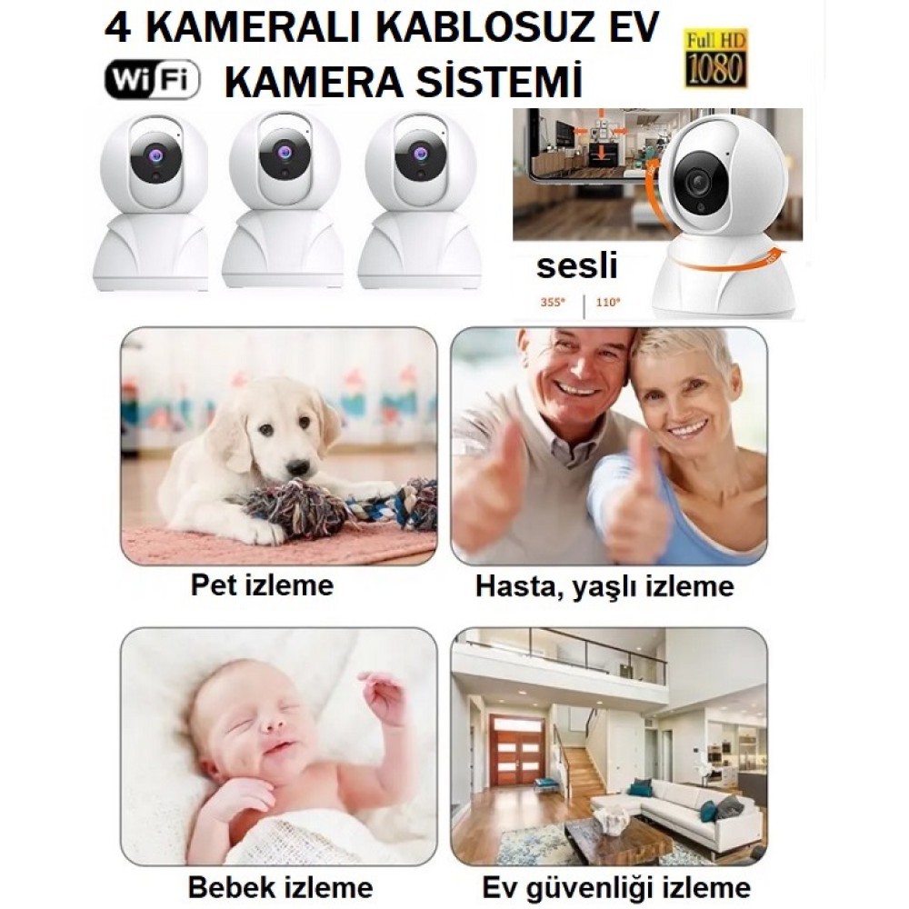 4 KAMERALI, KAYITLI, SES ALMA, SES GÖNDERME, HAREKET ALGILAMA ÖZELLİĞİ